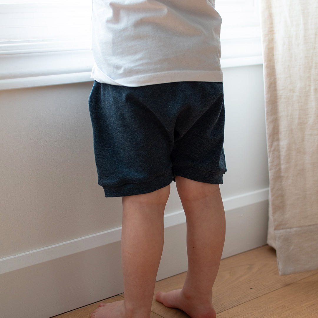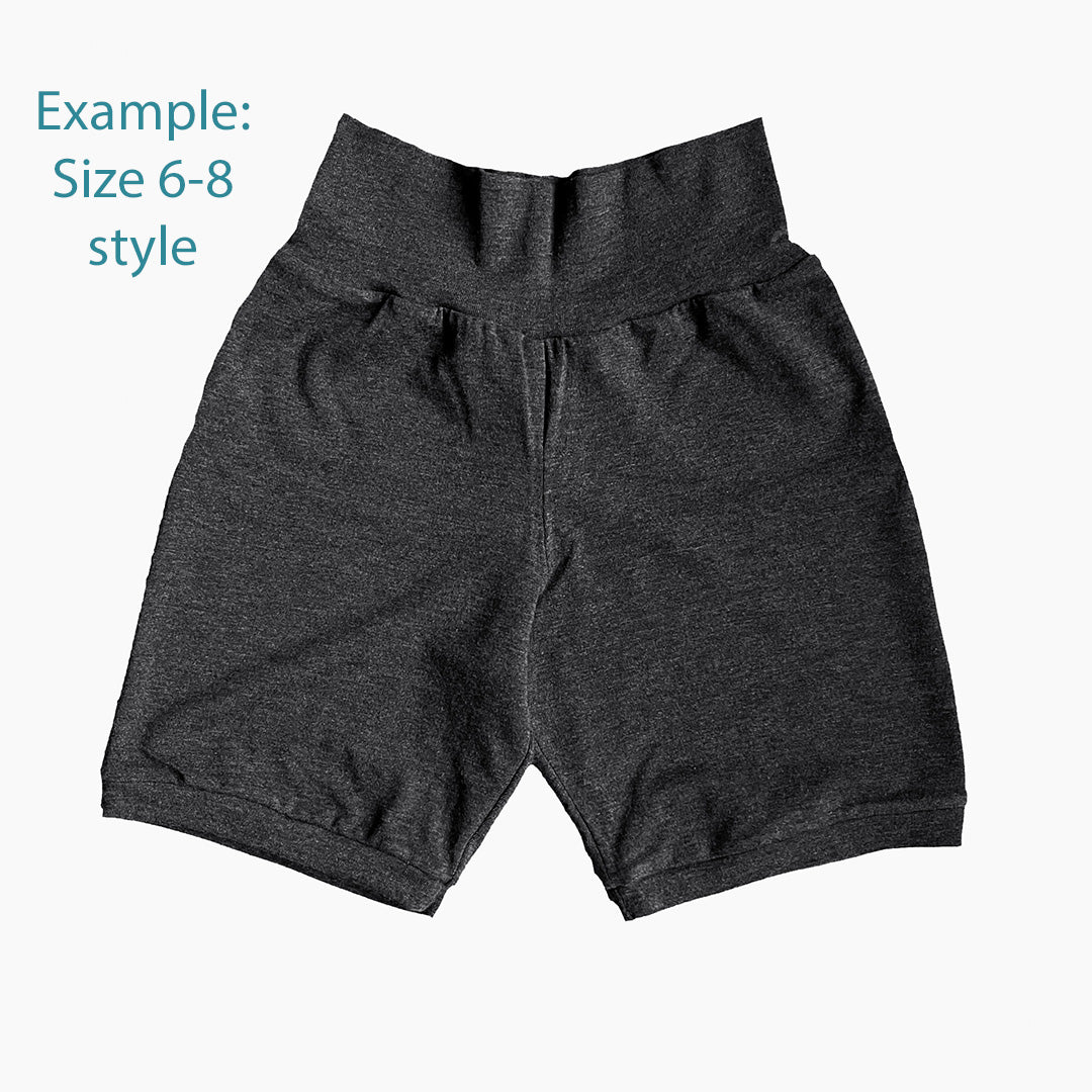 We design our clothes to last comfortably through multiple sizes. Our harem shorts have wide waistbands that can be down to adjust the size. The waistbands are soft and stretchy to comfortably grow with your baby.